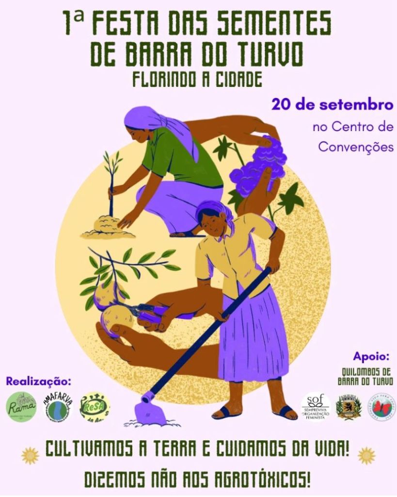 Agradecimentos especiais à RESA – Rede de Sementes Agroecológicas, AMAFARVA – Associação de Mulheres Agricultoras e Artesãs do Vale do Ribeira, RAMA – Rede Agroecológica do Vale do Ribeira, SOF – Sempreviva Organização Feminista, ISA – Instituto Socioambiental, IDESQ – Instituto de Desenvolvimento Sustentável e Quilombola, Iniciativa Verde, MDA – Ministério do Desenvolvimento Agrário, UFSCar – Universidade Federal de São Carlos, Rede de Sementes do Vale do Ribeira, Associação Quilombola de Barra do Turvo, cujo apoio tornou possível a realização deste evento tão significativo para a comunidade.